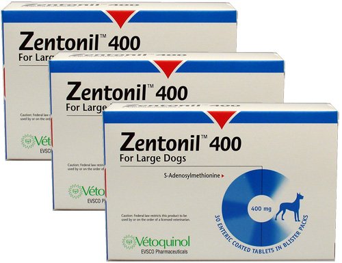 Provides a secure and efficient therapeutic software for the comfort of hepatic misery.Produced with top of the range compounds below strict pharmaceutical same olds.Pure, stabilized salt of S-A Adenosylmethionine.Improves liver perform.Clinically confirmed in trials to safely and effectively reinforce and offer safety to liver cels in compromised animals. Liver Problemss One answer, three alternatives. Zentonil is a new stable form of S-Adenosylmethionine (SAMe), a compound that is vital to commonplace liver operate. S-Adenosylmethionine has been clinically confirmed in veterinary trials to safely and effectively support and protect liver cells in compromised animals.. ... Read more 3 PACK Zentonil Tabs 400mg for Large Dogs (90 Tablets)
